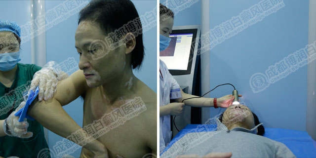 因为病情时间长,前期治疗未果,我院先为安澜进行全方位的大检查,以便全面了解病情。为了更好的确定治疗方案,从治疗史、黑色素细胞存活性、免疫系统等多方面综合考虑,医院多位主任联合为安澜制定诊疗方案,结合白癜风分诊中心的光疗与中医中心进行前期铺垫治疗,并在全程亲自操作治疗,避免偏差出现。