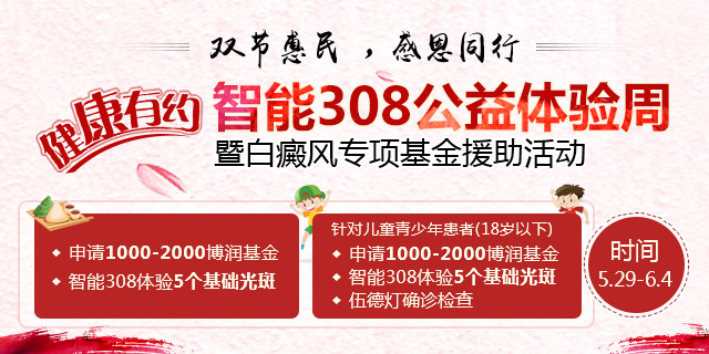 端午节期间,为了让白斑患者及时控制病情、让更多白癜风患者接受科学规范化诊疗并解决看病贵问题,我院联合四川省慈善总会·博润白癜风专项基金开展“健康有约智能308公益体验周暨白癜风专项基金援助活动”,让更多患者能够正视白癜风,科学治疗白癜风。希望广大患者能够把握机会,尽早摆脱白癜风。